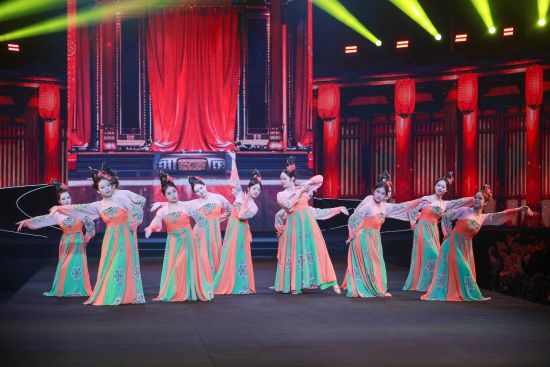 本年度的最大亮点之一,在于《唐锦宋韵》篇章的焕新呈现。原节目《大唐游春图》由更为经典恢宏的《霓裳羽衣舞》所取代。舞者们身着飘逸霓裳,伴随悠扬古乐翩翩起舞,其舞姿曼妙,阵容华美,淋漓尽致地再现了“大唐盛世,霓裳羽衣”的绝代风华,将观众带入了一个充满浪漫与幻想的大唐盛世。