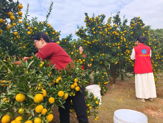 在苕溪村村民的红薯地和橘子园里,志愿者们身穿红马甲,手握锄头和采摘工具,采用小组采摘、双人运输、分工协力的方式默契配合,帮助村民们摘下已经成熟的瓜果,运出田地。当天累计采收红薯、橘子等200余斤。