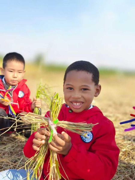 创作过程中,不同文化背景的孩子们相互交流、互帮互助,分享着创作的灵感与技巧。原本互不相识的小伙伴,在共同的实践中渐渐熟悉,语言的隔阂被真诚的笑容打破,农耕文化成为连接彼此的纽带。当孩子们举起亲手制作的稻草作品合影时,小脸上满是成就感,那些朴素的稻草在他们手中焕发新生,也让农耕文化以更生动的形式在心中扎根。
