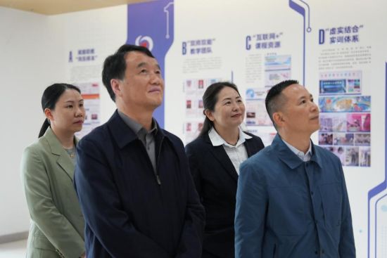 向东工匠学院负责人、信息工程学院党总支书记张先成向考察组介绍了工匠学院的发展历程。学院2006年成立“向东班爱心家教协会”起步,坚持以公益服务为根基,持续开展爱心助学与兴农实践,彰显“公益绿”的奉献精神;坚持以党建引领为核心,推进“党建翼联”项目,传承“信仰红”的精神基因;以技能提升与科技赋能为驱动,深化校企合作与产教融合,打造“科技蓝”人才培育引擎,逐步构建起“公益绿、信仰红、科技蓝”三位一体的特色工匠培养体系。