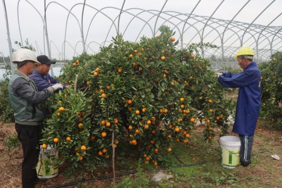 经过数年的摸索,金溪双辉果业不断嫁接新的品种,还利用大棚的温控技术,让桔树挂果的时间从头年10月份一直延续到第二年的正月,每个月都有鲜果出园。