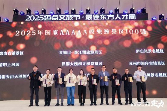 活动上,龙虎山景区再次入选,迈点2025年“国家5A级旅游景区100强”奖,并作为10家优秀景区代表上台领奖。