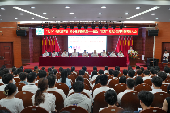 五四青年节期间,学校以“北斗领航青春志 五四薪火铸担当”为主题举办表彰大会。活动系统回顾五四运动的历史意义,深刻阐释五四精神的时代内涵,对“五四”红旗团总支、“五四”红旗团支部及近1000名优秀大学生予以表彰。大会以“北斗星”领航工程为牵引,激励青年学子牢记“铸魂立根、砺能笃行、修身明德”的成长追求,将五四精神转化为勇担使命的奋斗动力,为学校高质量发展注入青春活力。