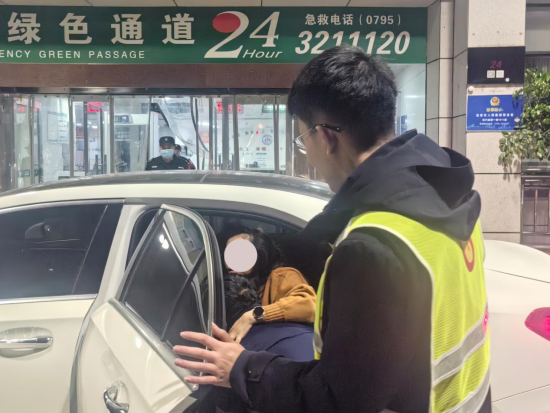 时间就是生命。周义立即启动应急响应机制,呼叫当班班长付伟峰前来协助。两人小心翼翼将李女士搀扶至车辆后座,由周义驾驶患者车辆,火速驶往宜春市人民医院,付伟峰全程密切关注患者状态,不断安抚亲属情绪。