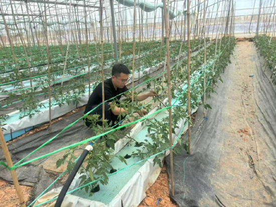 近日,走进金溪县琅琚镇蓝家排现代农业示范基地,只见智能温控系统正精准调节着大棚内的温湿度,水肥一体化设备将定制营养液均匀输送到无土栽培的番茄根系,返乡创业的示范基地负责人聂志强正在带领工人们抢抓晴好天气为大棚内的西红柿苗进行人工授粉。这一充满科技感的农业场景,正是“新农人”引领传统农业转型升级的生动写照。
