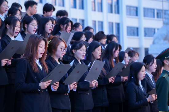 晨读结束后,现场举行了庄严的宪法宣誓仪式。四名校国旗护卫队的学生手持国旗,肃立于前。全体参与人员在社长何一诺的领誓下,面向国旗,高举右拳,郑重宣誓:“我保证,永远忠于中国共产党,忠于祖国,忠于人民……遵守宪法和法律,践行社会主义核心价值观……为中华民族伟大复兴努力奋斗!”誓言铮铮,表达了江服学子忠于宪法、忠于祖国、忠于人民的坚定信念,以及刻苦学习、报效社会的青春担当。