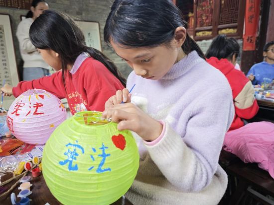 “宪法就像灯笼的骨架,支撑着我们的生活;民法典的条文如同灯笼的光,照亮每个人的权益。”志愿者一句生动的比喻,拉开了灯笼DIY环节的序幕。彩纸、竹篾、画笔在孩子们手中翻飞,大家一边跟着志愿者学习扎骨架、贴灯面,一边认真写下“做守法小公民”“宪法在我心中”等法治心愿。当一盏盏承载着童真与信念的“法治灯笼”被点亮,暖黄的光晕映在孩子们笑脸上,也将遵纪守法的理念播撒进幼小的心田。