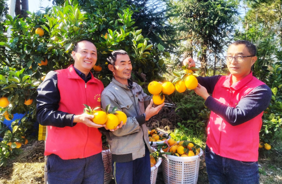 初冬时节,赣南革命老区处处洋溢着丰收的喜悦。近日,在江西省赣州龙南市东坑村的山岗果园里,中国电信赣州分公司驻村工作队的“红马甲”们与果农何太阳一同忙碌,金黄的脐橙与鲜艳的马甲交织,构成了一幅动人的“助农丰收图景”。
