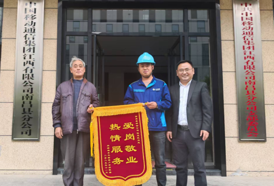 近日,南昌县向塘镇东风路的余老先生,专程带着一面饱含感激之情的锦旗来到中国移动南昌县分公司,紧紧握着装维人员饶忠民的手,向他表达诚挚谢意。这面锦旗不仅是对一次紧急服务的肯定,更是对饶忠民长期以来贴心守护银发用户的高度认可。