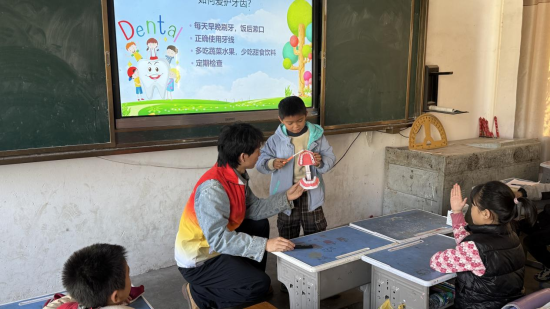 在塘南中心小学的课堂上,宣讲团志愿者则通过生动有趣的互动形式开展口腔健康科普。借助牙齿模型,他们将复杂的口腔结构转化为直观的视觉展示,引得同学惊叹:“原来牙齿有这么多细节!”课堂中穿插知识问答、刷牙实操比赛等环节,学生们踊跃参与,气氛热烈。带队老师课后评价:“这样的课堂既好玩又实用,连我们老师也跟着涨知识了。”在轻松愉快的氛围中,孩子们深刻认识到保护牙齿的重要性及不良习惯的危害,在心中早早播下了“爱牙护牙”的健康种子。