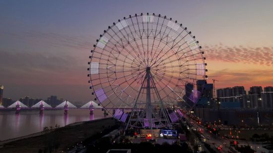南昌之星摩天轮景区位于江西省南昌市红谷滩区赣江之滨,是集城市观光、文化体验、滨江休闲于一体的城市地标型旅游景区。景区核心建筑——南昌之星摩天轮高约160米,于2006年建成并投入运营,曾为世界最高摩天轮,现为世界第三高、国内最高摩天轮,是“天下英雄城”最具辨识度的城市地标之一。摩天轮共设60个全景观光轿厢,单圈运行约30分钟,最高可同时承载480名游客。游客登临其上,赣江两岸壮阔景致尽收眼底,城市天际线一览无余,成为市民和游客俯瞰英雄城的“最佳视角”。