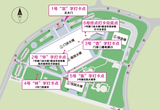 6号打卡点(1号楼门诊大楼1楼龙华杏林集打卡兑奖区):凭5个印章开启抽奖,兑换体验券