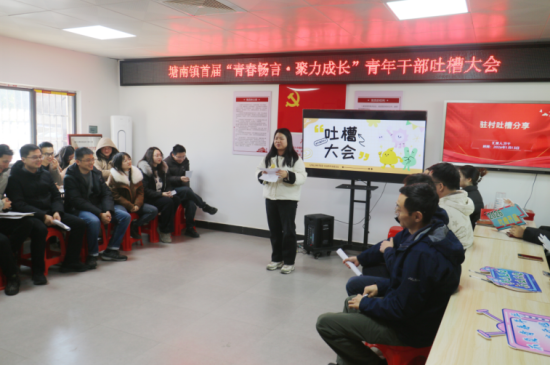 为深入了解年轻干部思想动态,营造敢言真言、正向沟通的工作氛围,近日,南昌县塘南镇组织开展了一场别开生面的青年干部“吐槽大会”。活动邀请选调生、镇村干部等青年代表,围绕工作与生活中的难点、痛点、堵点,以轻松幽默的方式畅谈心声、反映问题。