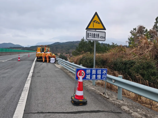 早在寒潮来临前,九江管理中心各养护部门便已进入“战时状态”,结合历史数据与气象预警信息,精准排查并锁定易结冰重点路段,提前在各关键点位足量储备物资,全面检修设备,确保各类物资“即需即用”、应急设备“即调即动”。
