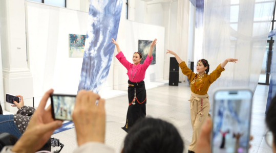 演出曲目巧妙呼应展览主题,呈现出一幅多元融合、层次丰富的情感画卷。千年京韵《梨花颂》中,梅派唱腔与交响乐深情对话;《从此眼里都是你》《咱老百姓》则以质朴的民族旋律,唤起深植于心的乡土情怀。竹笛独奏《荒》以空灵之音叩问苍穹,与男女声二重唱《色盲》中“唯见一人色彩”的炽烈告白相映成趣,细腻勾勒出现代人的情感世界。随后,藏族锅庄《目视之人》踏歌起舞的温婉律动,与《萱草花》《美丽的神话》中流淌的跨时空柔情悄然融合。钢琴与双声部创新演绎的《声声慢》,在古典词韵间织入亲子对话的当代温馨;而美声《忆秦娥・恒山月》则以磅礴之气,将山河壮丽升华为艺术哲思。整场演出贯通古今、融汇中西,从个体情感到家国情怀,最终汇聚成一场引发深度共鸣的心灵交响。