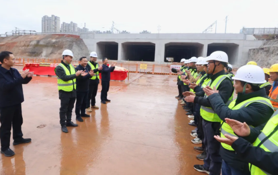 在圭峰大道下穿铁路项目施工现场,涂晓晖与项目负责人和工人们亲切交谈,详细询问工程进展、安全保障及春节期间工作安排情况。“大家辛苦了!感谢你们为红谷滩建设作出的贡献!”涂晓晖亲手将慰问品送到工人手中,叮嘱项目方要在确保工程质量和安全生产的同时,切实安排好工人们春节期间的生活保障。