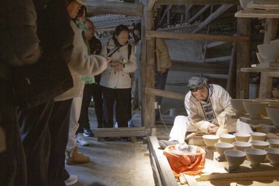 在手工制瓷生产线上拉坯、利坯、画坯等非遗技艺在眼前一一展现。游客们驻足围观,目不转睛地看着老师傅们的精湛技艺,不时发出阵阵惊叹,有的拿出手机记录下这神奇的瞬间。这个大年初三,景德镇古窑民俗博览区以最浓厚的年味、最鲜活的文化、最贴心的服务,迎接每一位远方来客。