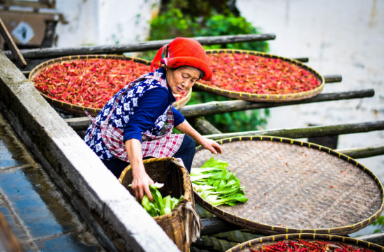 步入篁岭古村天街,徽州传统拦门酒仪式热情相迎,地道徽派民俗表演轮番上演,非遗手作体验与婺源特色乡愁小吃散落街巷。春日限定的春笋、蕨菜等时令农货铺满晒匾,成为崖上古村独有的春日风景。