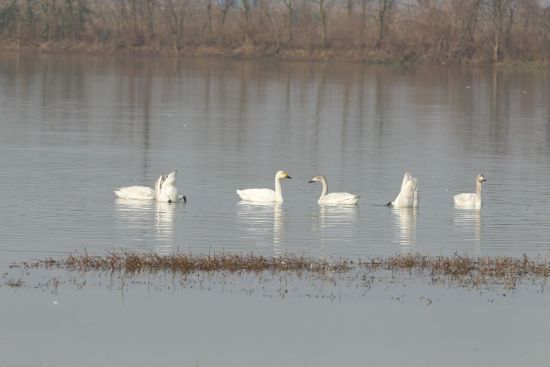 这些小鸟在冬季遍布湿地的每个角落。随后,工作人员在凤尾湖监测到6只小天鹅和2只赤麻鸭,这是今年越冬期首次记录到这两种物种。