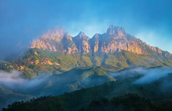 灵山的绿意,更因垂直分布的植物群落而层次分明。800米以上的高山,马尾松、檵木、猴头杜鹃等在这里扎根;500-800米半山,毛竹成海、油茶吐新,杜鹃枝头蓄蕊;300米以下山麓,香樟、栲类繁茂生长,嫩芽新叶透着生机。山间更有石茶、枫荷梨等特色药用植物,毛竹、箬竹等多种竹类,春日里抽芽展叶,尽显鲜活。