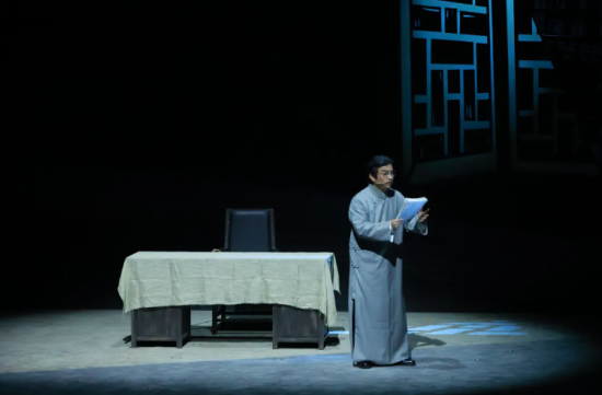 舞台上,高亢激昂的弋阳腔回荡剧场。演员们身着素雅庄重的戏服,以精湛演技细腻刻画了方志敏面对威逼利诱不改初心的坚定意志,以及在狱中挥笔写下《可爱的中国》时的赤子情怀。灯光随剧情明暗交替,铿锵的锣鼓点与婉转的帮腔交织共鸣,演员们或正气凛然,或伏案疾书、神情凝重,每一个眼神、每一个手势都极具感染力,将烈士的赤诚与坚守演绎得入木三分。
