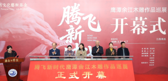 3月21日,由鹰潭市文化广电旅游局、南昌工学院、南昌应用技术师范学院主办,鹰潭市美术馆、中国工艺美术大师博物馆联合承办的江西文化艺术基金2025年度传播交流推广资助项目——《腾飞新时代——鹰潭余江木雕作品巡展》南昌站,在南昌工学院·中国工艺美术大师博物馆隆重开幕。开幕式由鹰潭市美术馆副馆长刘婷主持。