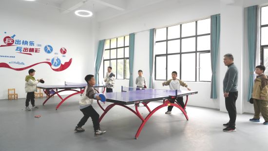 “我特别喜欢打乒乓球,以前周末只能在家里看电视。现在来这里,有老师教,还有好多小伙伴一起玩,特别开心!”学生黄奥擦了擦额头的汗珠,兴奋地说道。