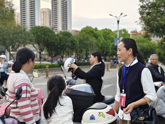 在护学一线,安远县组建了由交管、教师、家长志愿者和“小交警”组成的立体化护学队伍。每天上下学高峰,交管定岗值守维持交通秩序,教师全程引导学生排队过街,家长志愿者放弃休息时间轮流值守护学岗,“小交警”耐心劝导违规出行行为、为文明出行的家长点赞表扬,稚嫩的身影成为校园周边一道温暖动人的风景线。