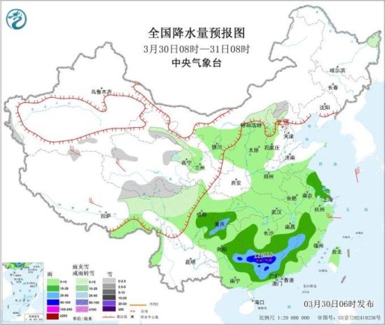 30-31日,江南、华南等地雨势不减,湖南、江西、广西、广东、福建等地部分地区有大雨或暴雨、局地大暴雨;上述地区并伴有短时强降水,部分地区最大小时雨量超过50毫米、局地80毫米以上。