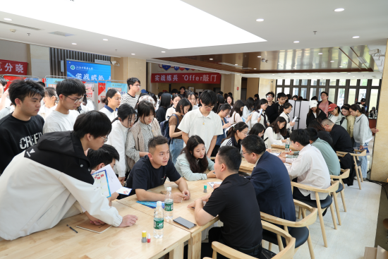 最受学子欢迎的求职游园会,将硬核技能训练融入趣味游戏,设置职位匹配大挑战、求职上上签、简历找茬、群面大逃杀、心跳30秒五大创意关卡。同学们组队闯关、积累积分,在轻松欢乐的氛围中学习职场知识、锻炼应变能力。